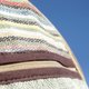 ▲以手织针织布+拼色棉麻布制作而成,手工棉的触感搭配鲜艳的配色,组成鲜明的色彩,是搭配衣着的好物,回归自然的美好经验