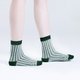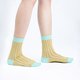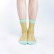 【欠3 / 4袜】使用双针筒织法,袜身上有一条条卷曲的立体织纹,边走边造成空气的波动。