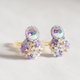 Materials: Swarovski bijoux, beads, spangles, faux suede, titanium post (stud earrings), Gold-plated (clip on earrings)