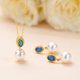 以18K黄金“封底”的澳宝呈现出另一种异域风情,与未“封底”款式的通透梦幻感截然不同,在K金包裹下的澳宝泛起海洋般的蓝绿色,彷如注定的缘份与来自大海珍贵的Akoya珍珠作连接,海风吹起连绵波浪,为女性的婉柔美添上几分异域色彩。
