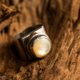 柔美琥珀色系的珠母贝,宽版的设计,手工稚朴薄银切工,除了展现出具有份量的存在感,并透露出古典的韵味。