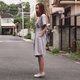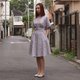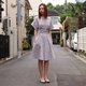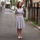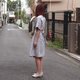 女装浅灰白条子束腰连衣裙