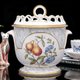 此冰桶为 Royal Worcester 200周年纪念系列(1789–1989)中最具代表性的作品之一。其图案灵感取自18世纪格洛斯特公爵 William Henry(乔治三世之弟) 所订制的宫廷晚宴用瓷,诠释出英伦宫廷餐桌上繁盛的水果与花卉美学。