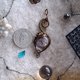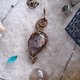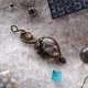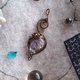 这颗小幽灵带灰紫到浅褐色的内含物,有一点丝绒感,搭配青金石和石榴石装饰