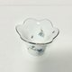 口径约 8cm,高度约 6cm。 这款白瓷小钵拥有如花朵含苞待放般的优美造型,表面点缀着细腻的手绘紫罗兰花卉,并以铂金妆点。 非常适合作为戒指收纳盘,或用来盛装棉签、牙签、糖包等小物,展现精致的生活质感。