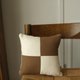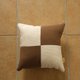 这款迷你靠垫是由象牙色的绗缝纱布和棕色纱布麻布混合制作。原来的棕色布料已经停产,但通过寻找合适的棕色布料,生产已经恢复。