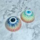 此作品是透过四到五层不同的釉药层层堆叠,借由每层施釉厚薄拿捏,并窑烧至1260度,历经20小时的烈火淬炼,让它在窑里收缩流动,产生出孔雀羽毛的斑纹与流动感。
