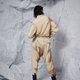 版型细节从大腿越过膝盖直到小腿的部分渐渐的收窄版型,使穿着后仍能在视觉上保有修长的腿部线条;裤管以多个复合式的活褶结构,从内延伸至小腿,除了让本款商品在视觉上做出更多的多层次,同时也保留了穿着的最大活动量,让两只裤管拉开时能够达到完全的一字。