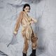 印花上致敬喜爱的美国设备艺术家Alexa Meade,她擅长2D变3D的“Trompe L’oeil”(错视画法)的绘画技法,以真实人物或立体的设备作为画布,再将这些立体的人事物绘画成平面油画的艺术风格;借由不断观察生活中时装的光影变化,并使用“2D上色技法”,以深浅不同的平面色块重新描绘出《魔法阿妈》剧中角色般的明暗与细节,并运用于服饰印花上,穿上后宛如从动画中走出的人物一般,看似平面(2D)又看似立体(3D)。