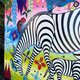 Mwamedi的缤纷宇宙系列,温和的斑马家族,漂浮在甜甜的粉彩宇宙。