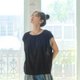圆润柔和的袖部设计,看起来仿佛没有袖子,但实际上能完整遮盖至上臂中段,且袖口宽敞,着实凉爽。