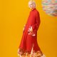 领口、袖口和裙摆处有颜色鲜艳的图案,