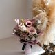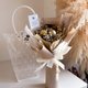◆采用进口索拉花、棉花、干燥满天星、卡斯比亚...等干燥花材制作而成。