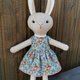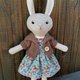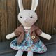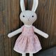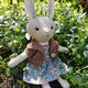 米色兔女郎毛绒玩具,含耳朵高度 35.5 厘米(14 英寸),羊毛面料,防过敏合成填充物。带有蘑菇或花朵的棉质连衣裙(购买前选择一件或两件连衣裙)和棕针织开衫。绣有眼睛和鼻子。所有衣服均可脱卸。如果您想要其他衣服 - 请联系我。