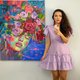 - Oil painting on stretched canvas. Girl in a flower wreath. Original hand-painted fine art one-of-a-kind Expressionist painting. Materials: oil paint, stretched canvas, brushes, palette knife.