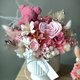 主材料:永生玫瑰花,绣球花,索拉花,米香花,法国蜡菊,金仗球,满天星,其它永生/干燥花材
