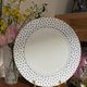这款Tiffany & Co.的瓷碟,采用高质量的白色瓷器制作,表面光滑细腻,碟边饰以经典的Tiffany蓝色图案,呈现一圈整齐排列的小型“T”字形设计,图案精致且均匀,与外围的金色细边相呼应,为整体增添一抹高雅气息。碟中央保持纯白,简洁大方,适合用于盛装各种美食或作为装饰摆件。