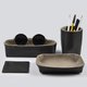 1组包含4个产品:1个储物盒,1个笔筒,1个托盘,1个杯垫。不同的尺寸适合不同物品的收纳需求。