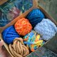鞋带式毛线(宝蓝)、绒线(橘)、棉线(藏蓝)