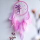 标签:粉红童话捕梦网、儿童房墙壁装饰、女孩房间装饰、迎婴派对礼物、圣诞礼物、粉红色和淡紫色羽毛、童话装饰、独特的儿童礼物、手工捕梦网。