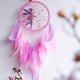 这款捕梦网采用美丽的粉红色和淡紫色色调制成,中心有精致的仙女剪影。下面悬挂的柔软羽毛增添了异想天开的感觉,增强了它的童话魅力。设计以复杂的珠饰和闪闪发光的配件完成,为任何房间营造出神奇的氛围。