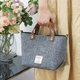材质:英国进口harris tweed羊毛表布+全棉内里,牛皮+棉织带手提带
