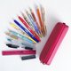 This cute pen case made from magenta pink leather and vivid pink fastener will stand out on your desk.