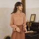- "大地色之所以流行,是因为其总是带给人高JI感,这款浅棕红,属于大地色中色彩纯度较高的颜色,能衬托出女性皮肤的白皙,也有种不一样的气质。 双层领叠加的设计无疑是ZUI大的亮点,中间分领,使两边对称分布,增加服装的整体对称性。