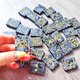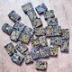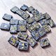 这些符文是手工制作的天然挪威拉布拉多石与蓝色彩虹. 这些符号被切割成石头并用金漆涂上。 每个符文的尺寸为35x36x7mm.为了您的方便,该套件以天然织物制成的手工袋形式发送。