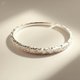 以自然光影为灵感打造的银色开口手环,表面以细致的凹凸纹理呈现如水面波光般的闪烁质感。简约俐落的外型中藏着低调的细节美学,展现现代极简与艺术手作的完美平衡。