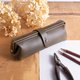 以充满手感的皮革,搭配有着机能美与趣味性的口金,以及饱满的圆润外型,透过细腻的皮革与哑光黄铜质感,将对细节的讲究注入这款皮革笔袋。