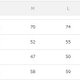 L: 衣长 74, 胸围 55, 肩宽 50, 袖长 22