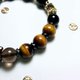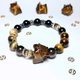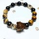 主石:黄虎眼石虎爷(每尊火彩各具特色) 配珠:黄虎眼石、梦幻虎眼石、冰曜石、黑耀石、茶晶 配件:高保色耐磨耗镀层铜饰 手围:16~16.5cm。可修改手围,改小不加价,改大超过17cm,会酌收材料费