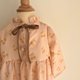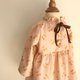 ☆ It is fashionable ruffle collar long-sleeved dress with gold cherries pattern back to elegant beige pink back ☆