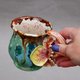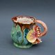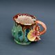 Unusual handmade mug. Hand molding. Mug decorated with a fabulous toothy orchid. Predatory mouth with a long tongue that serves as a handle. A bee on the tip of the tongue. Along the edges of the mug, the icing, the color of wild honey, spreads and beckons. The cup is made of white porcelain clay. The outside is covered with picturesque glaze with many interesting effects. This mug will serve as a bright gift with humor and meaning. Perfect for a person who "don't put a finger in her mouth", for a mother-in-law, for a mother-in-law, an outstanding personality, or for those who appreciate uniqueness and everything unusual. The mug is functional, like ordinary dishes. For any drinks. Suitable for dishwasher and microwave. Single copy.