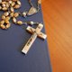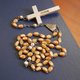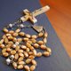 古董法国圣母信仰教堂十字架耶稣基督银色念珠项链N811