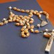 购自法国之念珠项链。 坠子背面有FRANCE法国的印记。 链子够长,可以直接套头配戴。 材质:塑料材质。 链子上的银色涂漆有轻微掉色,不影响美观及使用! 总链长60厘米。 Y字(圣母到十字架)总长度15厘米。 十字架4.7x3厘米。 古董饰品因为年份关系,请使用完后,放到夹链袋保存。 勿戴着淋浴、游泳等水上活动。 正常使用,寿命久久。