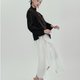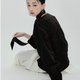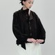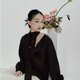 绕颈领带搭配可扣上可打开的小翻领,创造多样穿着方式。 侧腰开衩舒适自在。 澎袖设计灵活优雅。 古铜扣与手工湘云纱相辅相成。