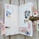 Moon journal handmade contains: tea dyed paper, archival papers, lace, charms, fabric cover. Hardcover but with fabric on it.