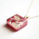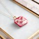以浓郁的蓝色为背景,点缀花朵和珍珠,搭配闪粉与白色线条,设计出优雅的吊坠。利落的方形线条能让颈部线条看起来更为修长。深沉的藏青色是秋冬季节的绝佳搭配单品。