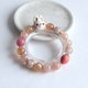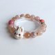 天然矿石 樱花玛瑙 . 蔷薇辉石 . Fimo软陶 . 925纯银14 K金 . 日本弹力丝线 .