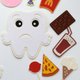 The set includes two teeth, a toothbrush and toothpaste, 8 products each, good and bad for teeth.