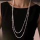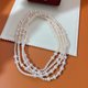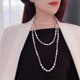 中国浙江诸暨山下湖是世界上最大的天然淡水珍珠基地。所产珍珠从圆度、色彩、光泽上多达到相当的高度。纱织小姐选用强光近圆的4-5mm淡水珍珠和8-9MM淡水珍珠毛衣链相间连接成155cm左右超长长度串链,可单圈或两圈佩戴或多圈重叠佩戴,亦或是可以借用自己家里的项链夹扣来组合百变的饰品,但个人更倾向于简单即是美,简简单单的两圈很能提升日常穿衣的气质!155cm的长度相当于差不多4条标准项链,在珍珠用量和穿制技能上需要相当高的标准和水平,所以需要定制加工。