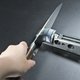 高达80%的飞机门边原料零件:航太铝合金材质,保留余料加工过后的孔洞以及润饰过后俐落的外型,搭上实用的磨刀石,使用简单且不碍于左右手,成为厨房独特的功能型精品架饰。