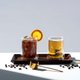 内外双层的透明玻璃结合,内杯悬空于中心,能有效隔绝杯内的温度避免烫手。凝结于内层的冰饮水气与各形各色的饮品相互搭配,满足视觉飨宴。