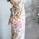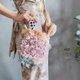 将欧根纱布料撕裂,编织成充满空气感的柔软质地。撕裂后的柔软布料产生挺度。透过一针一线扎实编织,创造出蓬松的立体感。