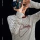 」未完成的詩「仿佛是在信紙上隨手涂鴉的字母字符,濃郁秋意的酒紅咖色條紋衫,