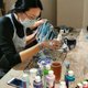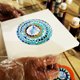 流体画的创作令人疗愈,一开始老师会讲解基本的配色原理,接下来选定想要的颜色,让颜料层层堆叠在器具上,最后洒落的瞬间,会有层次堆叠的美,再让浮出的颜料加以流动,创造出层次与流动的美。在过程中可以透过小型火枪去扫过想要的区块,让压克力颜料产生的一圈一圈的细胞效果,这过程非常纾压,最后的成品会让自己很有成就感喔。(课程会多制作一个流体画杯垫)
