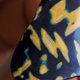 变涂的层次中有深浅蓝色与漆黄,竹胎本身的黄.