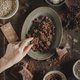 先将燕麦片与多种坚果拌匀,再加入琥珀色红茶茶汤,使燕麦片吸饱茶汤香气,并添加日本高级糖渍柚子片与细致茶末。